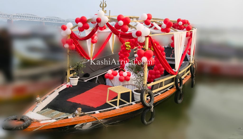 Whether it is a birthday celebration, anniversary, proposal, pre-wedding shoot, family gathering, or a private party, a decorated boat on the Ganga creates an unforgettable atmosphere. Guests can enjoy music, elegant decorations, soft lighting, and the peaceful flow of the river while cruising along the iconic ghats of Kashi.